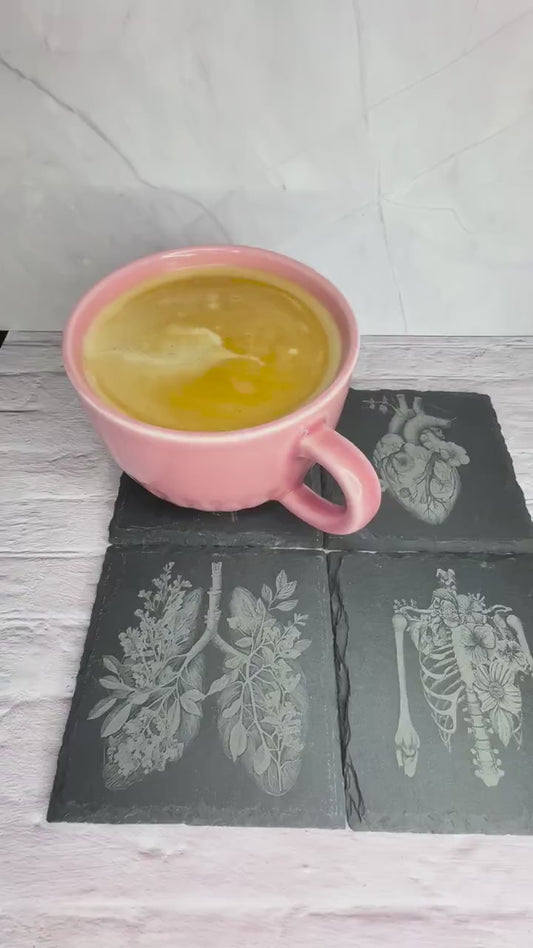 Floral Botanical Anatomy Slate Coasters | Personalised Gift | Heart | Brain | Lungs | Ribs | Doctor Gift | Surgeon Gift