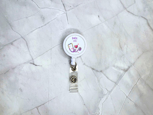 Purple Stethoscope ID Badge Reel Clip | Personalised | Medic Gift | Nurse | Doctor | Vet | Paramedic | Graduation