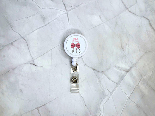 Pink Stethoscope Bow ID Badge Reel Clip | Personalised | Medic Gift | Nurse | Doctor | Vet | Paramedic | Graduation