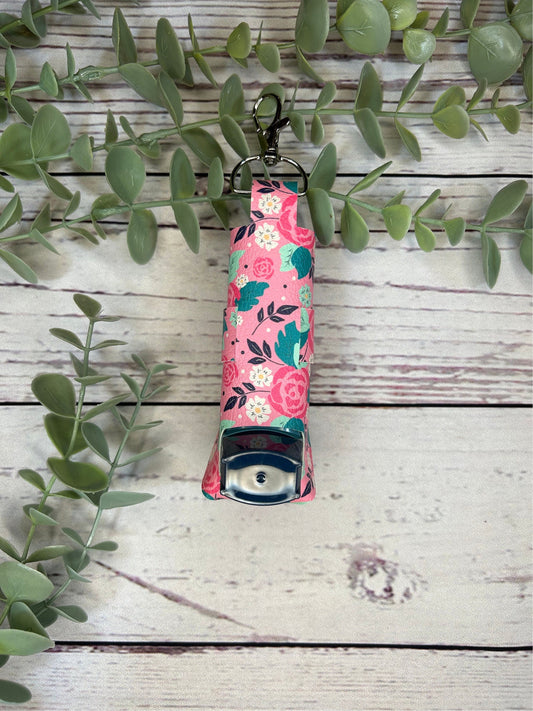 Faux Leather Inhaler Holder - Pink Flowers | Inhaler Case | Asthma Inhaler Holder | Asthma Pump Cover | Keychain