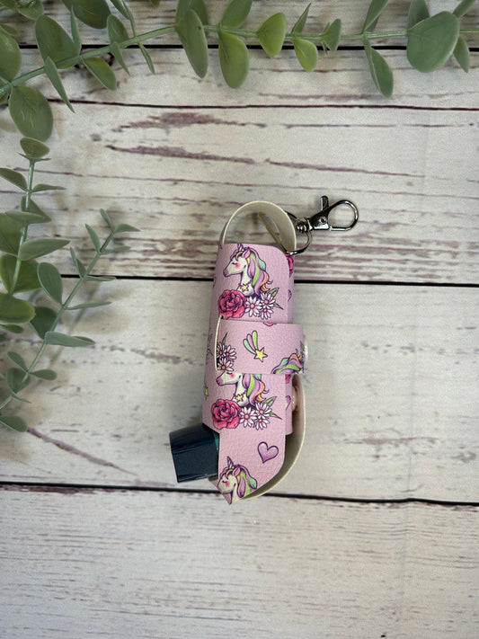 Faux Leather Inhaler Holder - Pink Unicorns/Rainbows/Bows | Inhaler Case | Asthma Inhaler Holder | Asthma Pump Cover | Keychain
