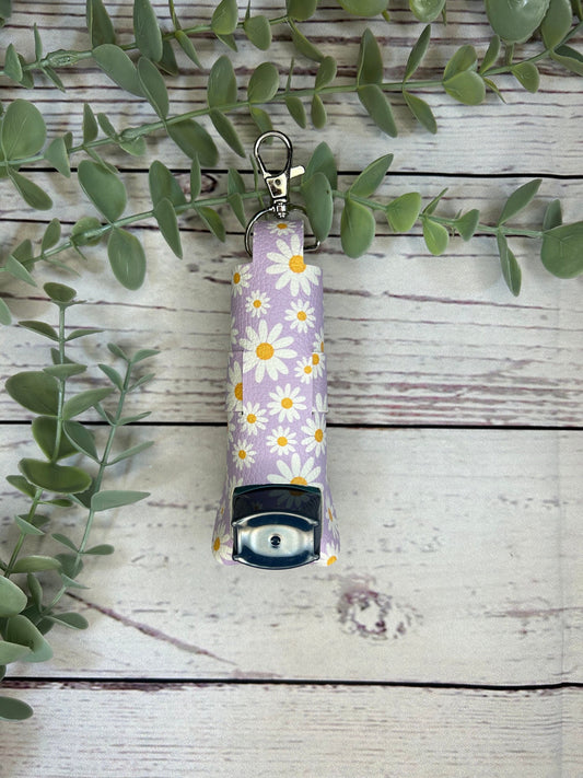 Faux Leather Inhaler Holder - Purple Flowers/Daisy | Inhaler Case | Asthma Inhaler Holder | Asthma Pump Cover | Keychain