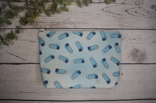Handmade Inhaler Pattern Medication Bag - Blue | Inhaler Pouch | Asthma Bag | Puffer Pouch