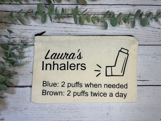 Personalised Cotton Canvas Inhaler Bag | Cotton | Inhaler Pouch | Medication Bag