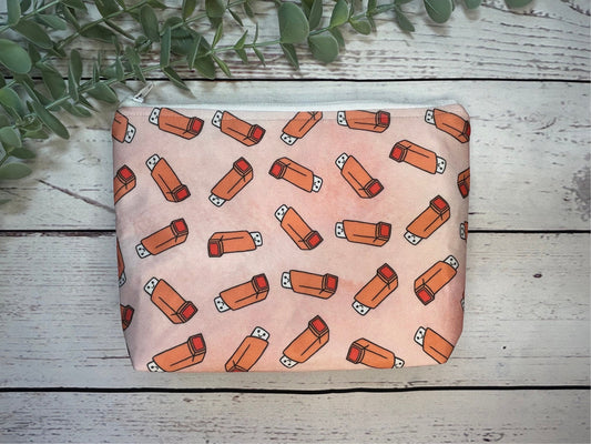 Handmade Inhaler Pattern Medication Bag - Orange | Inhaler Pouch | Asthma Bag | Puffer Pouch