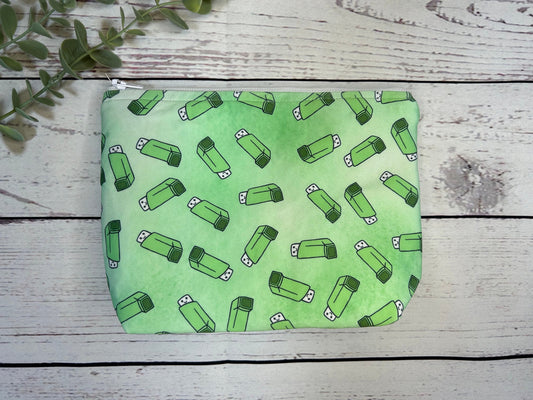 Handmade Inhaler Pattern Medication Bag - Green | Inhaler Pouch | Asthma Bag | Puffer Pouch